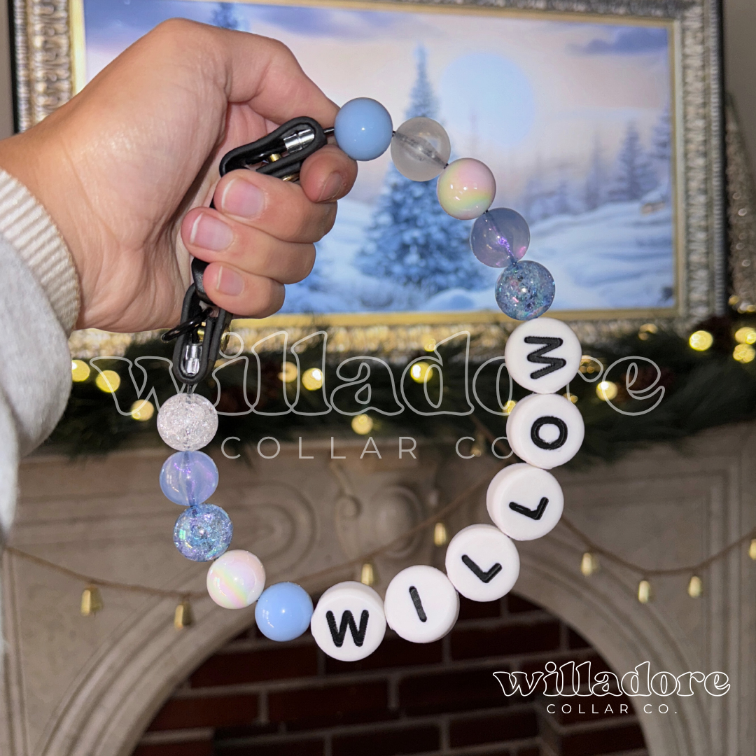 Frosty, fun, and winter-perfect — the Flurry collar sparkles with icy blues, silvers, and whites inspired by freshly fallen snow! Ideal for snowy walks, winter adventures, or simply channeling that cool seasonal style.
